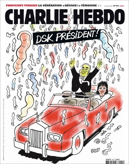 2011: När sexskandalerna med Dominique Strauss-Kahn bröt ut publicerade de detta. "DSK for president". (Han skulle ställt upp i presidentvalet om inte skandalerna kom emellan.)