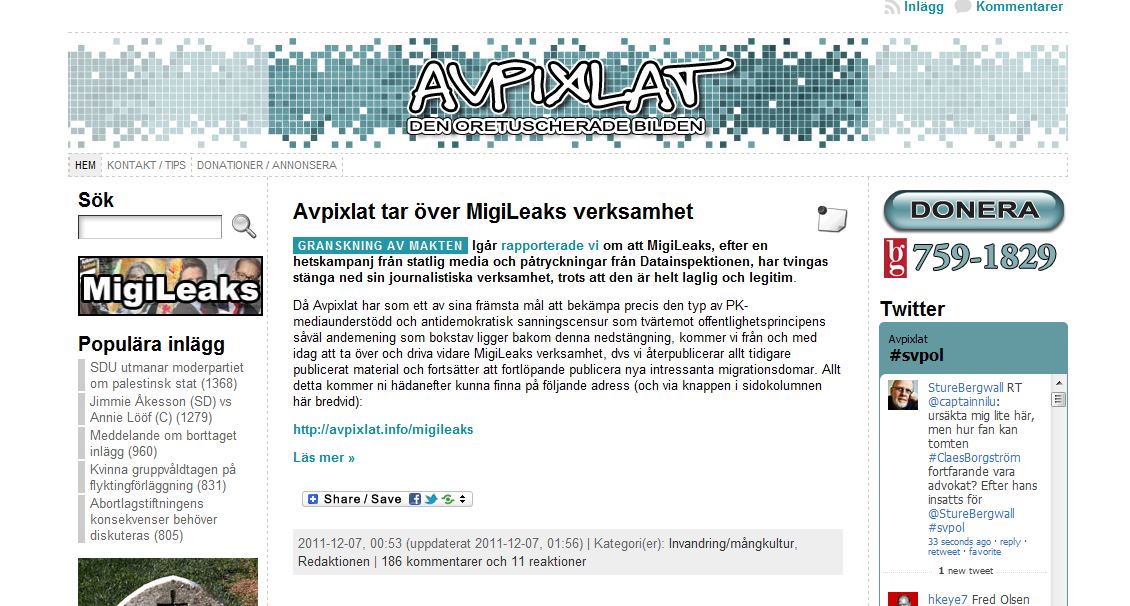 Inte ens i Sverige är yttrandefriheten säkrad. Så sent som 2006 stängde faktiskt den svenska regeringen en hemsida, ägd av ett svenskt politiskt parti, Sverigedemokraterna, för att de publicerade tecknade bilder som ansågs utgöra ett hot mot den nationella säkerheten (bild på profeten Muhammed). Det visar att vi i Sverige inte står så långt från barbariet och avgrunden som vi tror.