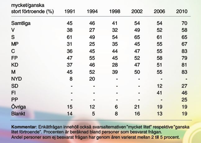 Sverigedemokraterna har inte bara sina väljare utan också en stor grupp potentiella väljare. Det man bör hålla i huvudet då man studerar dessa undersökningar är att kanske 20% av befolkningen ingår i denna grupp just nu. Det är folk som också har väldigt litet förtroende för politikerna.
