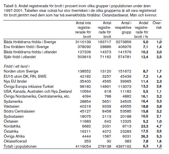 ”BRÅ har förresten i två rapporter (1996:2 och 2005:17) avfärdat socioekonomiska förhållanden som orsak till invandrares överrepresentation när det gäller registrering för brott.”