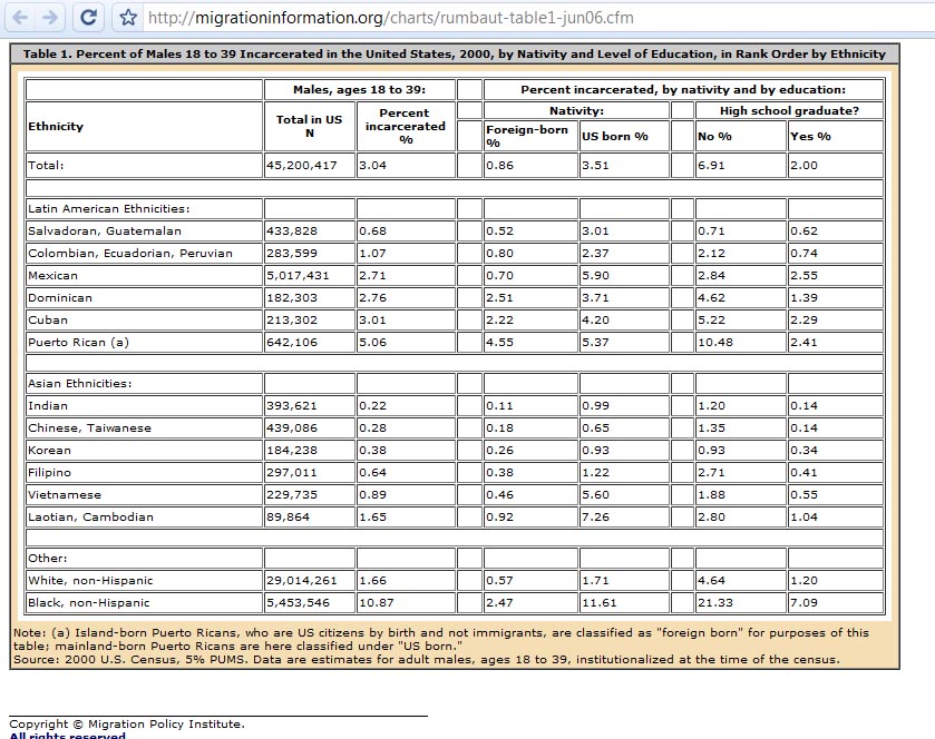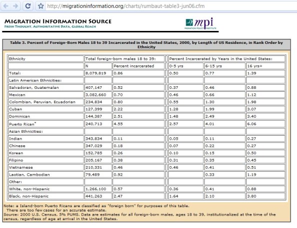 Ser ni det paradoxala. Invandrare som är utrikesfödda är långt mindre brottsliga än personer som fötts i USA. 0,86% jämfört med över 3%. Alltså tvärtemot hur det är i Sverige.