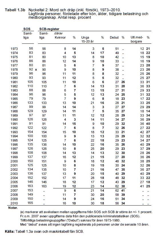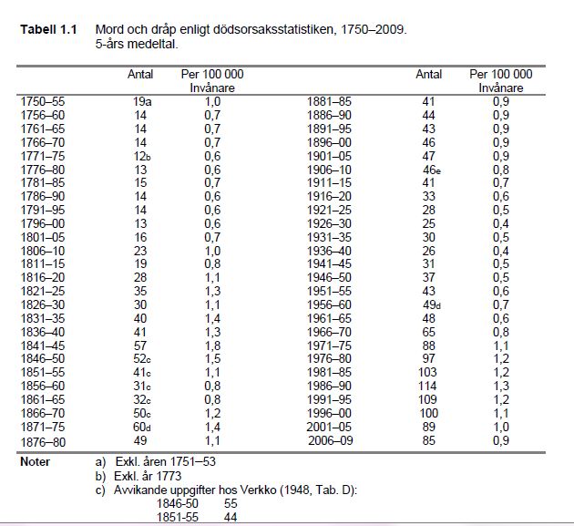 I den första delen vill jag påpeka ett fel. Först skiver du ”Ett sätt att försöka ta reda på hur det ligger till är att hitta statistik som inte kan förändras beroende av lagar och sociala mönster. En sak man kan göra är att studera antalet mord och dråp.”