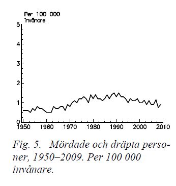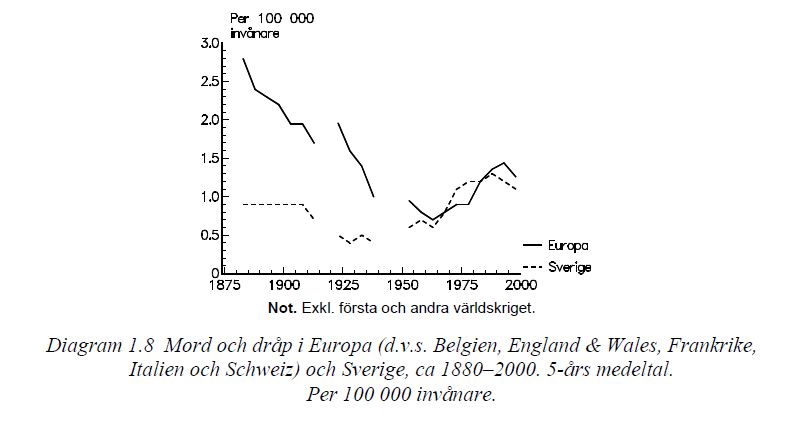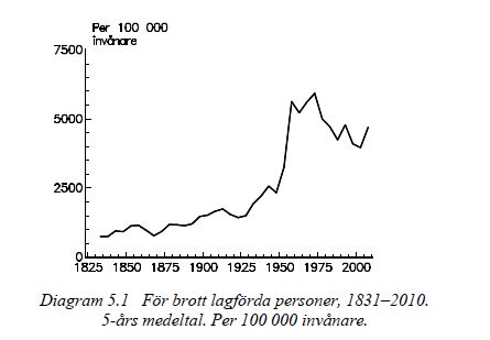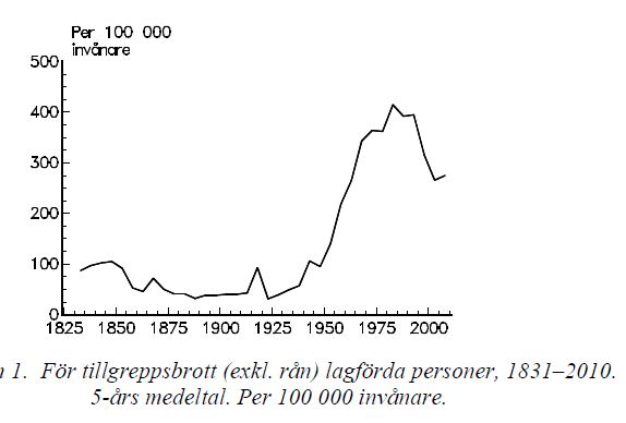 Statistiken tyder återigen på en katastrofartad ökning av brottslighet och våldsdåd mellan 40-talet och 70-talet. Men efter det tyder inte statistiken på att brottsligheten ökar lavinartat. Tvärtom!