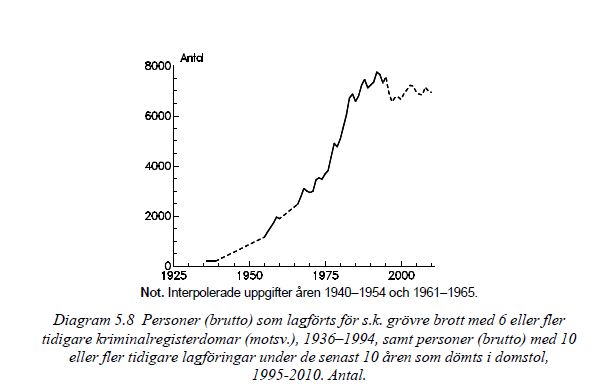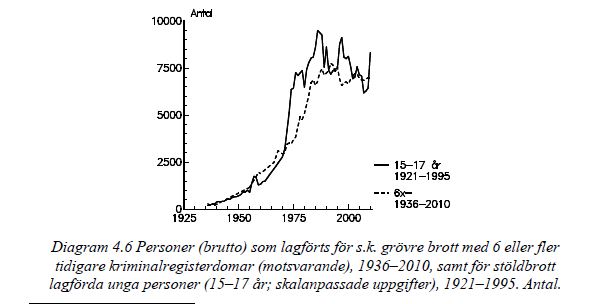 Om man tittar på statistiken ser man att det framför allt är ungdomsbrottsligheten och den tunga brottsligheten (återfallsbrott) som ökade under tiden 1940 till 1980 ca.